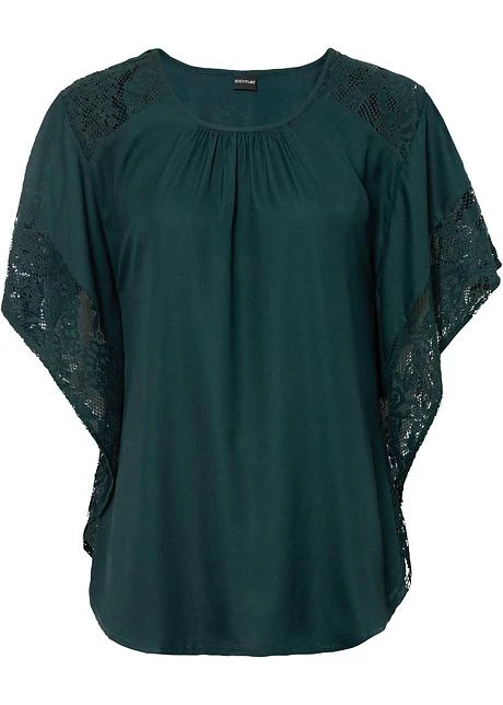 Cette blouse de la marque BODYFLIRT est empreinte d’un charme féminin. L’application séduisante en dentelle aux manches chauve-souris en fait une pièce favorite du dressing. Long. env. 70 cm.