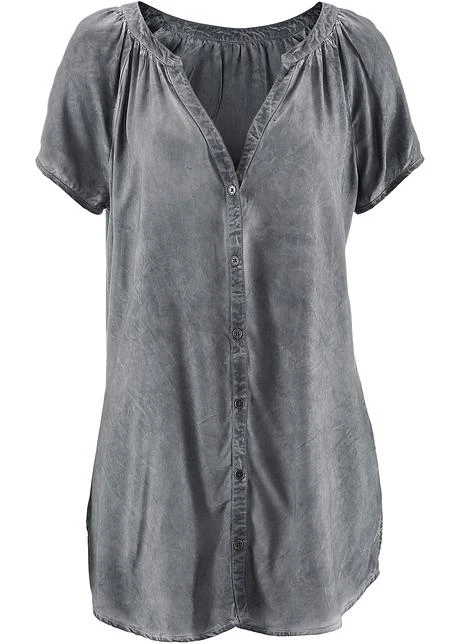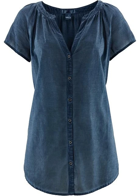 Stylé et confortable : ce chemisier cold-dye à manches demi est une jolie pièce qui vient compléter votre garde-robe d’été.La technique de coloration spéciale cold-dye donne à ce chemisier de bpc un petit style vintage. Sa coupe trapèze est légèrement arrondie à la base. Vous pouvez le porter de façon classique avec sa patte de boutonnage continue sur le devant ou noué pour un look plus décontracté.