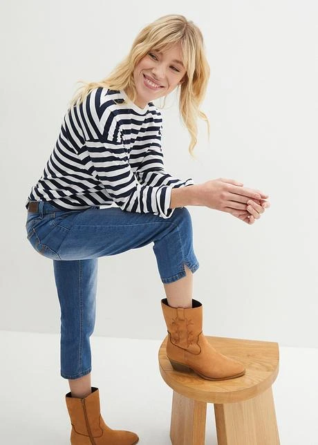 Un jean corsaire extensible confortable de John Baner parfait pour les chaudes journées. Ce pantalon 3/4 de coupe classique style 5 poches s’associe à merveille avec des T-shirts à imprimé mode, des débardeurs et des blouses à carreaux sportives. Avec deux poches latérales devant, une poche-ticket, deux poches plaquées au dos et une fente en bas de jambes qui complètent ce look de loisirs parfaitement décontracté pour tous les jours.