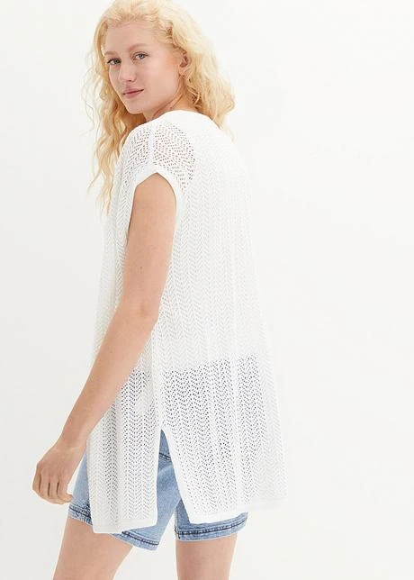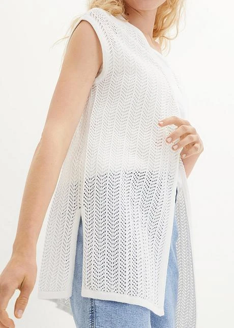 Gilet Sans Manches En Maille Ajourée Avec Fentes Latérales
