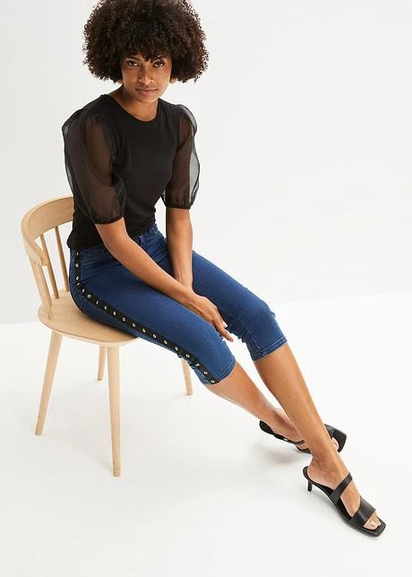 Ce superbe jean corsaire est une pièce polyvalente et facile à combiner pour les journées estivales. Long. env. 49,5 cm.