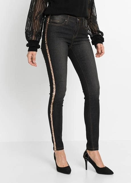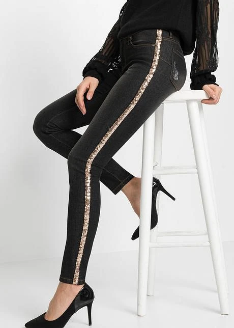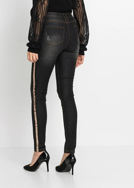 Jean stylé à avoir absolument dans son dressing, les rayures scintillantes sur les côtés ajoutent une touche spéciale. Long. env. 77,5 cm.