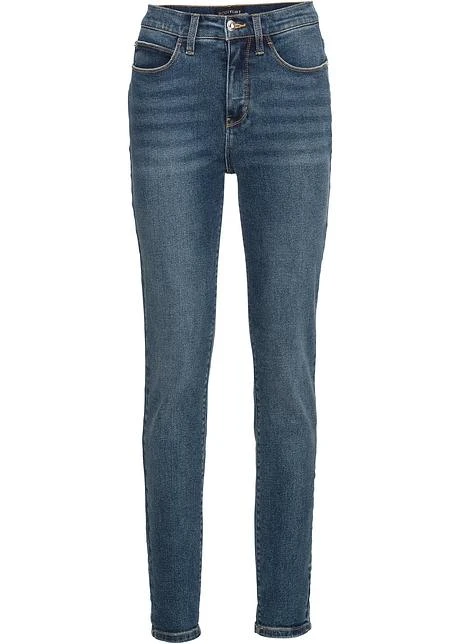 Un jean basique parfait. Avec 2 poches latérales et 2 poches au dos ornées de rivets argentés. Fermeture zippée et bouton argenté. Long. entrejambe env. 79,5 cm.