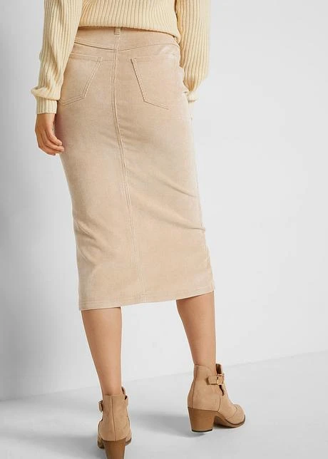 Jupe En Velours Côtelé Extensible Longueur Midi