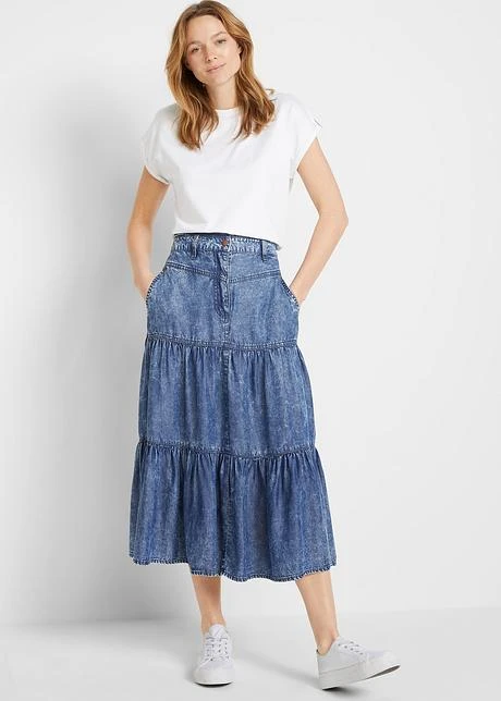Jupe Midi étagée En Lyocell