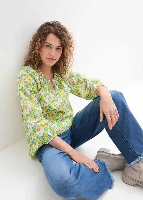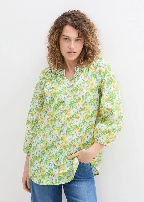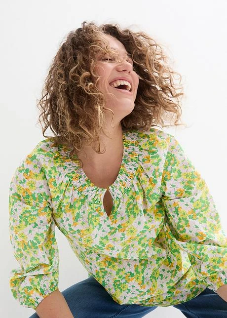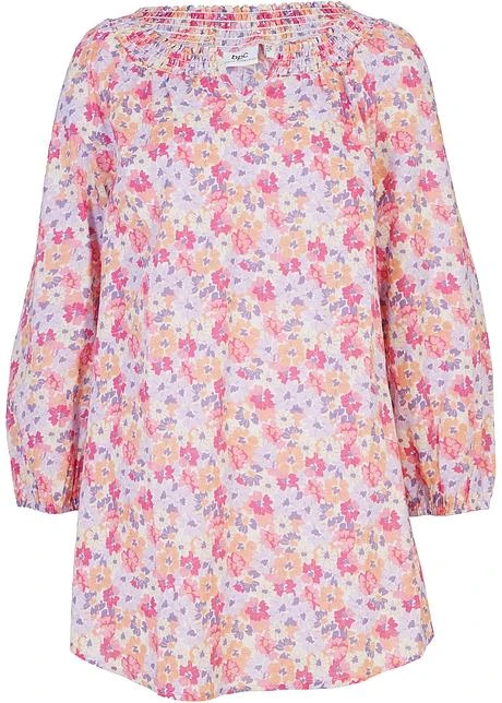 Longue Tunique En Coton Avec Encolure Smockée Et Manches Ballon