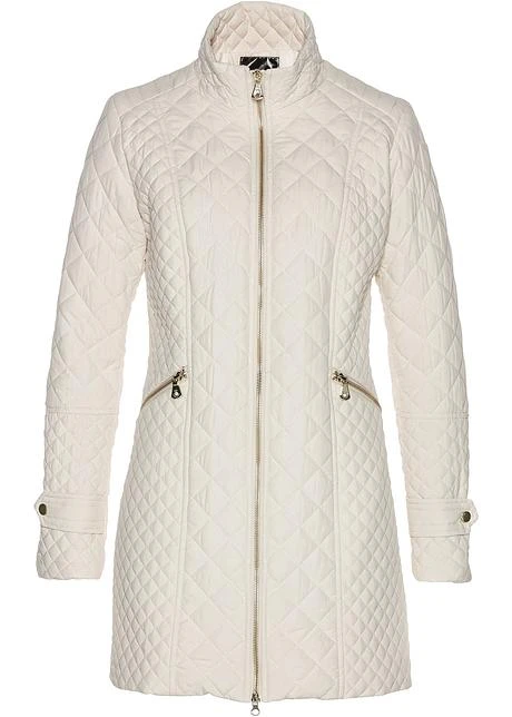 Manteau chic avec différents motifs matelassés et col montant, zips dorés sur le devant et sur les poches, long. env. 82 cm (pour toutes les tailles), lavage machine.