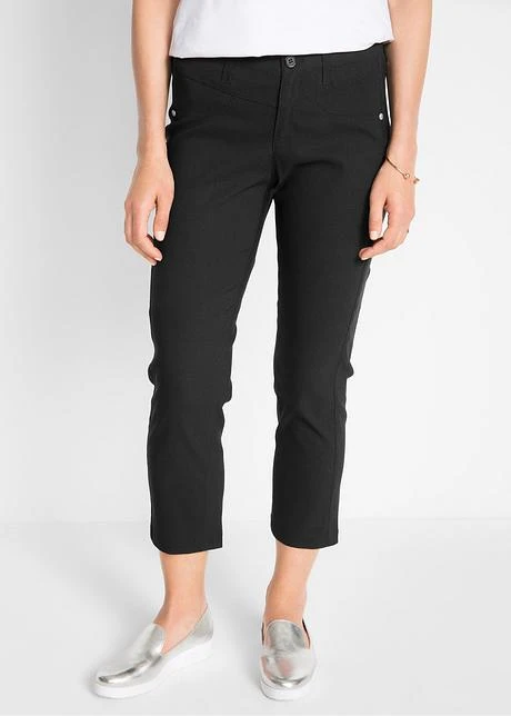 Affinant la silhouette, le pantalon extensible bpc est doté d’une couture centrale en V placée sur le devant. Aussi agrémenté de coutures d’empiècement, il crée un véritable effet amincissant. Disposant d’une coupe droite 7/8 et d’une hauteur de taille confortable, il est idéal pour la saison estivale. Il est accessoirisé de deux poches plaquées au dos et de passants pour ceinture.Permettant de se créer une tenue décontractée, le pantalon se complète d’une chemise fluide et de baskets en toile.