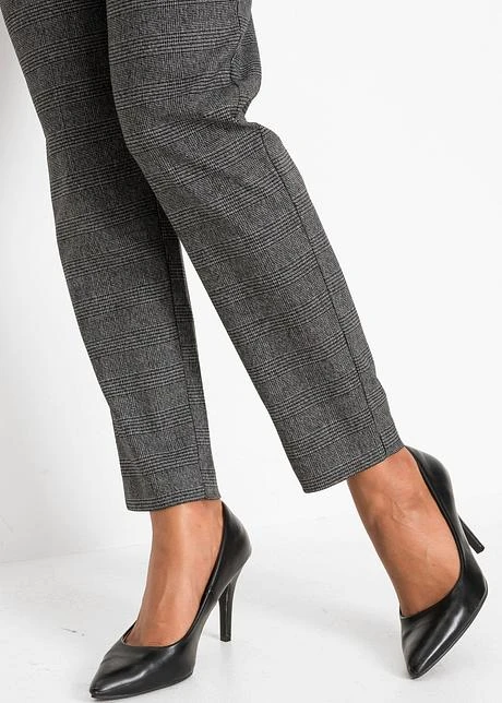 Pantalon à carreaux avec deux poches latérales et deux fausses poches au dos. Fermeture par un zip et un bouton. Long. entrejambe env. 71,5 cm.
