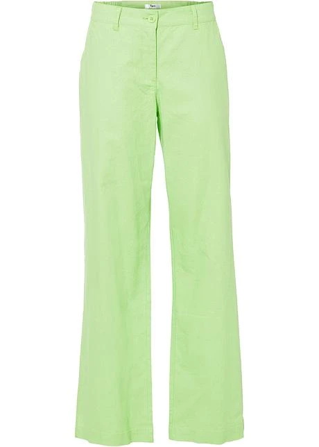Ce pantalon en lin majoritaire uni de la marque bpc de coupe large valorise la silhouette féminine. Les empiècements élastiques à la taille assurent un confort agréable et les poches latérales soulignent le look décontracté. Ce pantalon se ferme par un zip et un bouton devant. Ce joli pantalon en lin majoritaire se combine avec des tops, des T-shirts ou des chemisiers. Ce modèle est particulièrement agréable à porter durant les chaudes journées.
