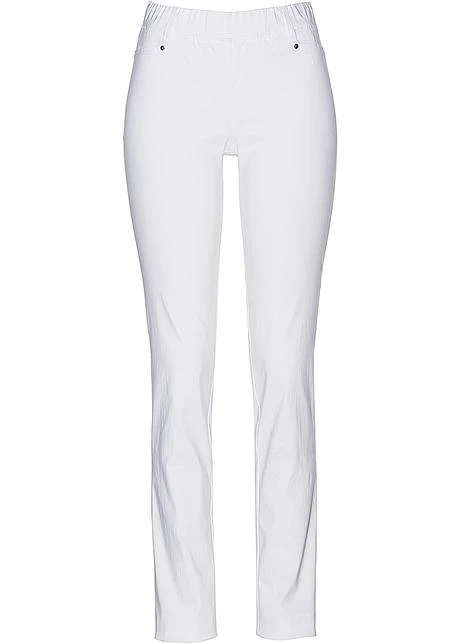 Tour de taille entièrement élastiqué, deux poches au dos, long. entrejambe env. 80,5 cm, lavage machine.