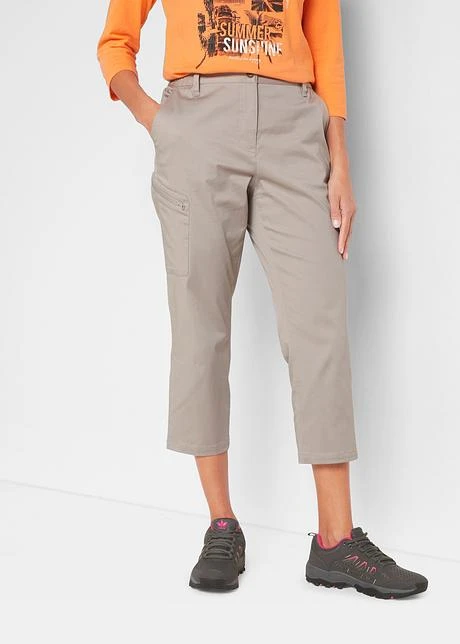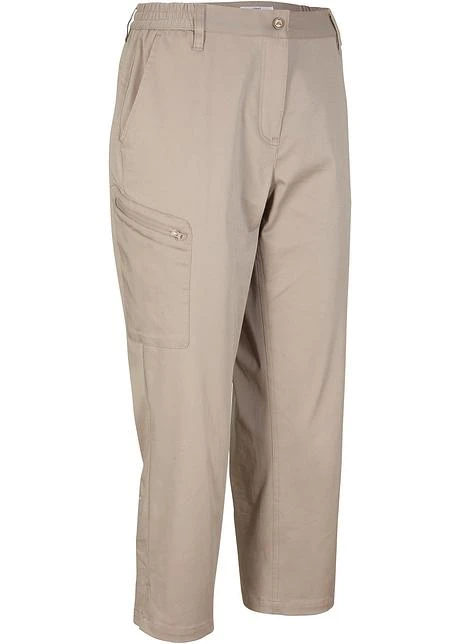 Avec passants de ceinture, fente à la base, empiècement élastique à la taille, poches zippées, long. entrejambe env. 77 cm, lavage machine.