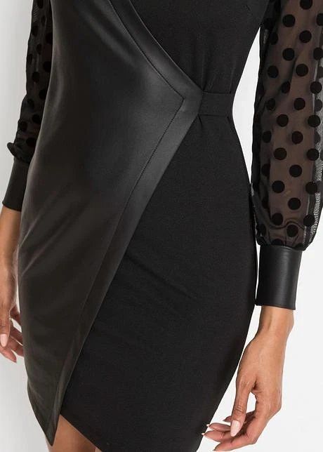Robe Avec Empiècement Enduit Et Manches En Dentelle