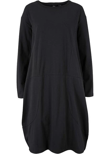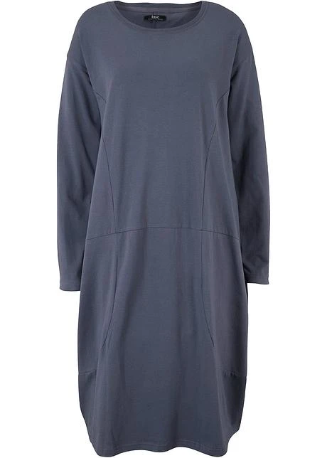 Robe De Forme Ovoïde En Jersey De Coton Avec Poches, Manches Longues Et Longueur Genou