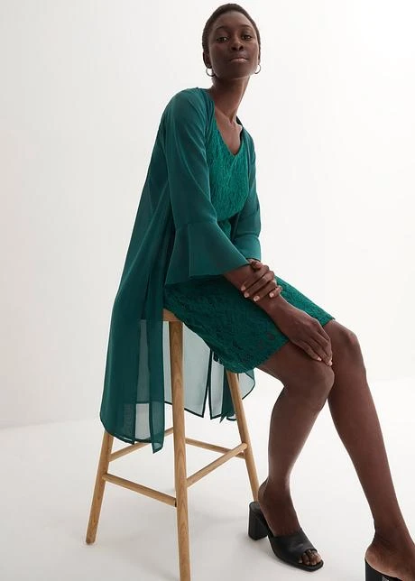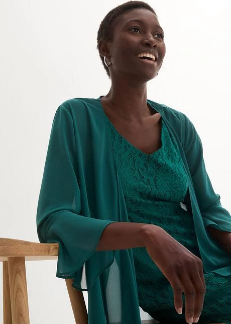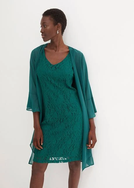 Robe En Dentelle Avec Gilet En Crêpe (ens. 2 Pces)