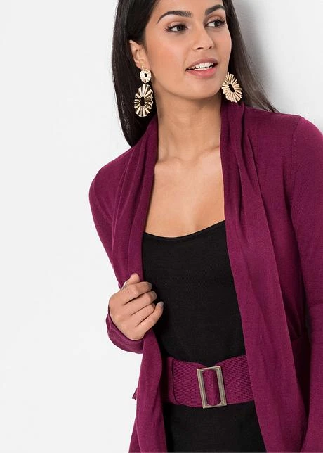 Robe en maille élégante accessoirisée d’une ceinture, style double épaisseur actuel, long. env. 90 cm, lavage machine.