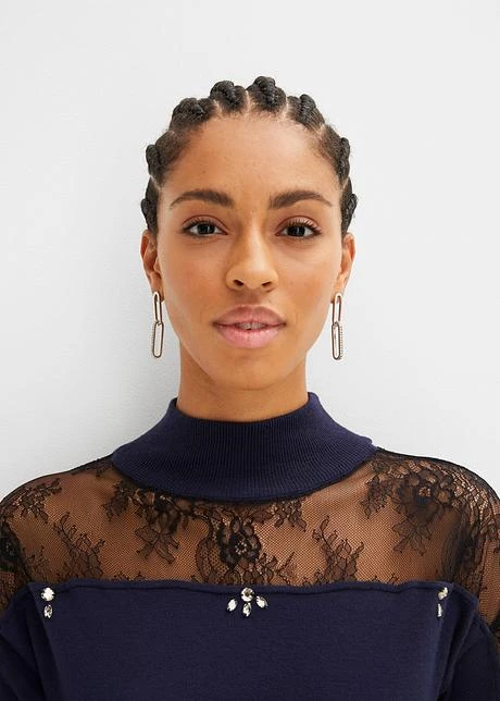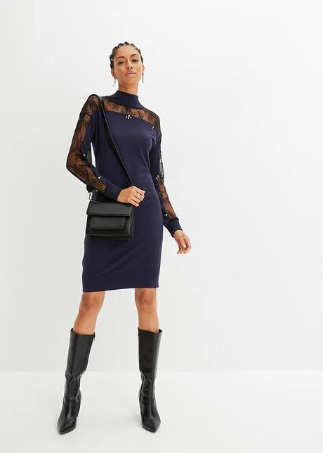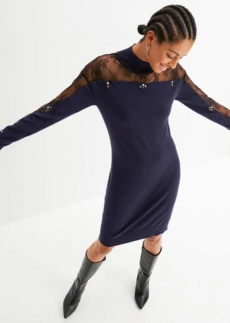 Robe En Maille Avec Empiècement Dentelle