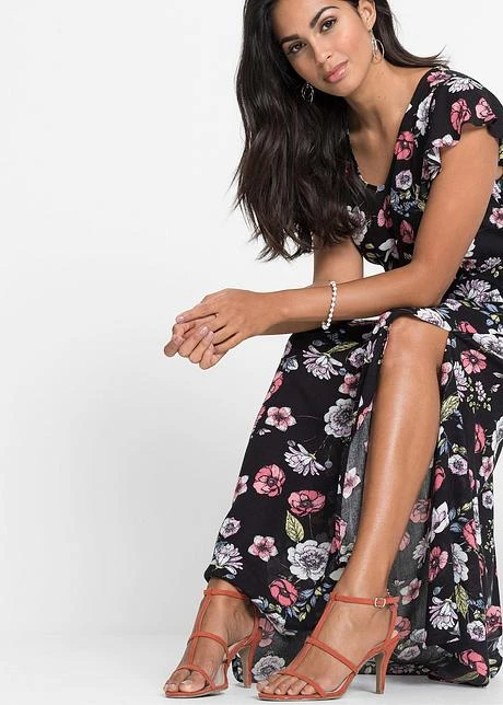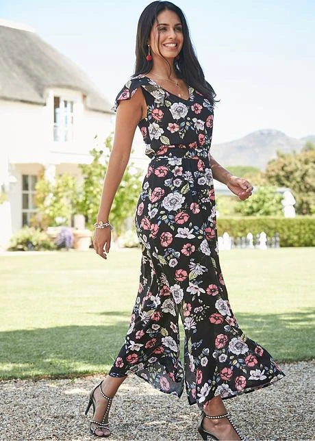Robe maxi longue mode resserrée à la taille pour souligner la silhouette féminine. Volants décoratifs sur les épaules. Cette robe estivale est une pièce must-have pour l’été. Long. env. 140 cm.