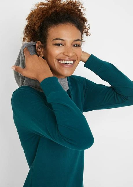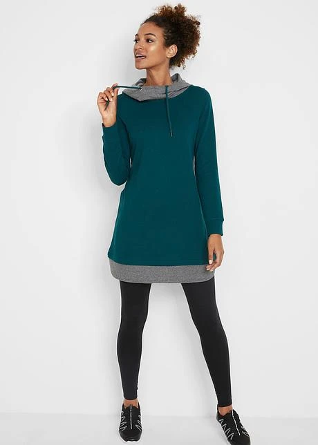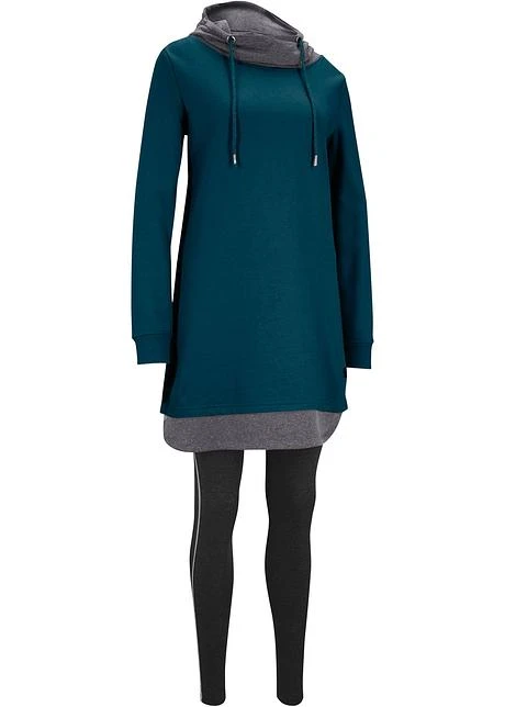 Sweat-shirt long à grand col et capuche avec cordon de serrage, base arrondie avec fentes, long. env. 88 cm, legging long. entrejambe env. 74 cm, lavage machine.
