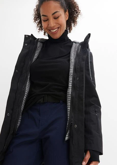 Veste longue 3 en 1 avec polyester recyclé avec capuche. Patte avec bouton pour régler l’ampleur à la base et en bas de manches. Veste extérieure avec poches plaquées. Veste intérieure avec poches kangourou et une capuche. Long. env. 90 cm, lavage machine.