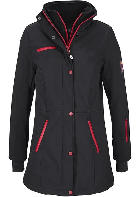 Veste style 2en1 avec empiècement coupe-vent zippé, cordon de serrage derrière à la taille, fermeture zippée double sens, poche intérieure avec passe-câble pour écouteurs, intérieur gratté chaud, long. env. 78 cm.